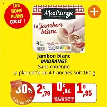 Actuellement en offre chez Coccinelle Supermarché : Jambon blanc madrange ✅ Valable du 28-01 au 8-02.