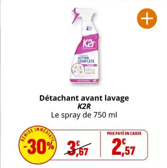 Actuellement en offre chez Coccinelle Supermarché : K2R Détachant avant lavage ✅ Valable du 14-01 au 25-01.