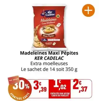 Actuellement en offre chez Coccinelle Supermarché : Ker cadelac - madeleines maxi pépites ✅ Valable du 2-01 au 11-01.
