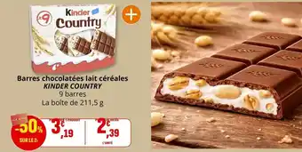 Kinder - barres chocolatées lait céréales offres et promotions en ligne chez Coccinelle Supermarché