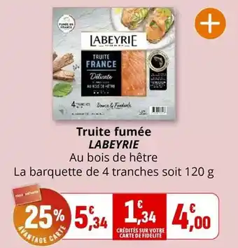 Actuellement en offre chez Coccinelle Supermarché : Labeyrie - truite fumee ✅ Valable du 11-02 au 22-02.