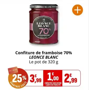 Actuellement en offre chez Coccinelle Supermarché : LEONCE BLANC Confiture de framboise 70% ✅ Valable du 14-01 au 25-01.