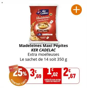 Actuellement en offre chez Coccinelle Supermarché : Madeleines maxi pépites ker cadelac ✅ Valable du 2-01 au 11-01.