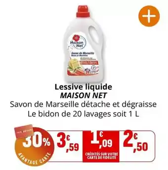 L'offre est disponible dans plusieurs magasins, vérifiez tous les produits pour obtenir le Maison net - lessive liquide le moins cher. Si vous souhaitez savoir si l'article est en vente avec une plus grosse remise dans un autre magasin, consultez la catégorie 'Supermarché'. Ces offres pourraient aussi vous intéresser : Maison net - lessive liquide, Lessive liquide maison net & Lessive liquide.