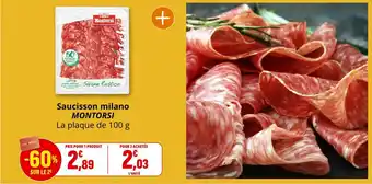 Actuellement en offre chez Coccinelle Supermarché : MONTORSI Saucisson milano ✅ Valable du 14-01 au 25-01.