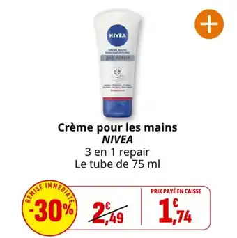 Actuellement en offre chez Coccinelle Supermarché : NIVEA Crème pour les mains ✅ Valable du 14-01 au 25-01.