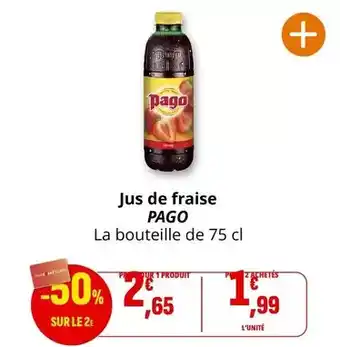 Actuellement en offre chez Coccinelle Supermarché : Pago - jus de fraise ✅ Valable du 11-02 au 22-02.
