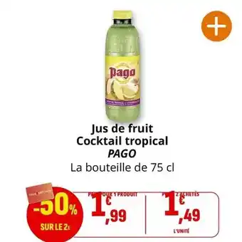 Actuellement en offre chez Coccinelle Supermarché : Pago - jus de fruit cocktail tropical ✅ Valable du 11-02 au 22-02.