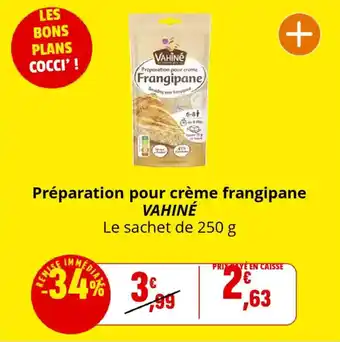 Actuellement en offre chez Coccinelle Supermarché : Préparation pour crème frangipane vahiné ✅ Valable du 2-01 au 11-01.