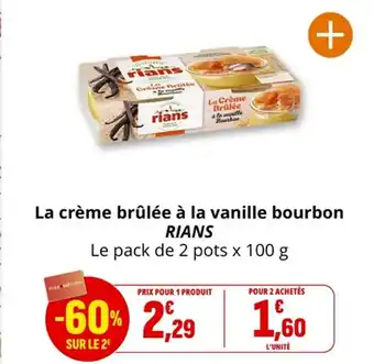 RIANS La crème brûlée à la vanille bourbon offres et promotions en ligne chez Coccinelle Supermarché
