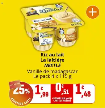 Le prix de l'offre Riz au lait la laitière nestlé se trouve également en haut de la page, ainsi que la date à laquelle l'offre est disponible. Vous pouvez également vérifier les prix dans le Catalogue Coccinelle Supermarché actuel ou sur le site Internet de Coccinelle Supermarché. Les offres vous permettent d'acheter les produits Coccinelle Supermarché au prix le plus bas.