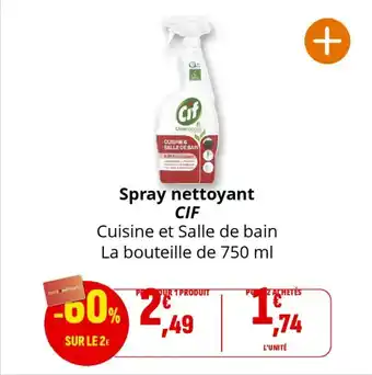 Actuellement en offre chez Coccinelle Supermarché : Spray nettoyant cif ✅ Valable du 28-01 au 8-02.