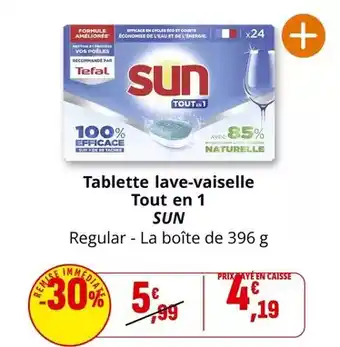 Actuellement en offre chez Coccinelle Supermarché : Sun - tablette lave-vaiselle tout en 1 ✅ Valable du 11-02 au 22-02.