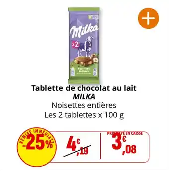 Actuellement en offre chez Coccinelle Supermarché : Tablette de chocolat au lait milka ✅ Valable du 2-01 au 11-01.