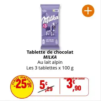 Actuellement en offre chez Coccinelle Supermarché : Tablette de chocolat milka ✅ Valable du 2-01 au 11-01.