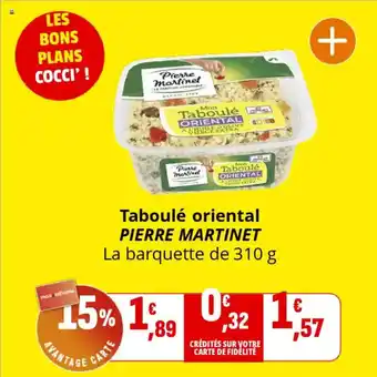 Actuellement en offre chez Coccinelle Supermarché : Taboulé oriental pierre martinet ✅ Valable du 2-01 au 11-01.