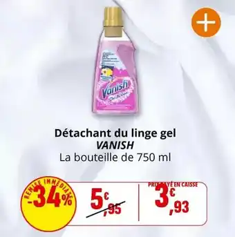 Actuellement en offre chez Coccinelle Supermarché : Vanish - detachant du linge gel ✅ Valable du 2-01 au 11-01.