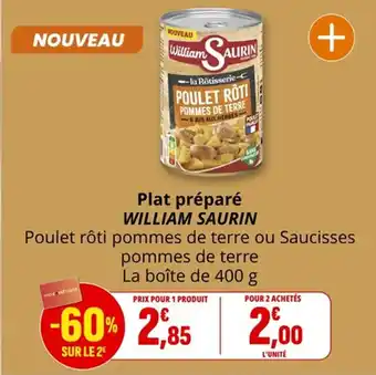 Actuellement en offre chez Coccinelle Supermarché : WILLIAM SAURIN Plat préparé ✅ Valable du 14-01 au 25-01.