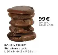 L'offre est disponible dans plusieurs magasins, vérifiez tous les produits pour obtenir le Pouf nature le moins cher. Si vous souhaitez savoir si l'article est en vente avec une plus grosse remise dans un autre magasin, consultez la catégorie 'Meubles & Décoration'. Ces offres pourraient aussi vous intéresser : Le pouf, Le pouf & Pouf noci.