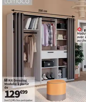 En plus de l'offre Kit Dressing Modulix, Conforama propose une large gamme de produits. Consultez le Catalogue Conforama hebdomadaire pour découvrir les meilleures offres et promotions. En plus de Kit Dressing Modulix, il y a aussi : Kit dressing, modulix à partir de, Le kit dressing & Kit dressing.
