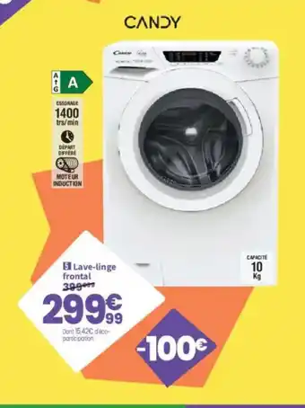 CANDY Lave-linge frontal bénéficie actuellement d'une réduction chez Conforama. Vous trouverez ici toutes les infos utiles sur les prix, la durée de validité et les conditions de l’offre. Pensez à consulter aussi d'autres offres et promotions similaires pour CANDY Lave-linge frontal afin d’acheter toujours au bon prix. La promo CANDY Lave-linge frontal est valable du 31-03-2026 au 27-04-2026. Offre terminée ? Pas de souci. D'autres offres sur ces produits sont peut-être déjà disponibles. Vous pouvez suivre cette catégorie de produits pour rester informé en cas de nouvelle promotion CANDY Lave-linge frontal chez Conforama. En comparant les offres, vous êtes sûr d’acheter au prix le plus bas possible.Questions fréquemment posées au sujet de CANDY Lave-linge frontal
