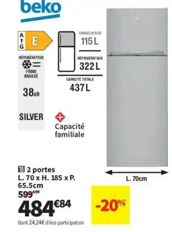 L'offre est disponible dans plusieurs magasins, vérifiez tous les produits pour obtenir le BEKO 2 portes le moins cher. Si vous souhaitez savoir si l'article est en vente avec une plus grosse remise dans un autre magasin, consultez la catégorie 'Meubles & Décoration'. Ces offres pourraient aussi vous intéresser : BEKO 2 portes, BEKO Combiné & Beko réfrigérateur combiné 324 l.