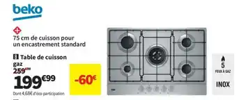 Actuellement en offre chez Conforama : BEKO Table de cuisson gaz ✅ Valable du 17-04 au 14-05.