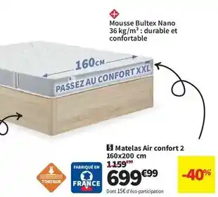 Offre Bultex - matelas air confort 2 160x200 cm chez Conforama