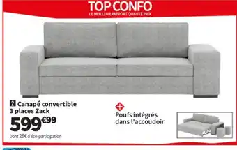 Actuellement en offre chez Conforama : Canapé convertible 3 places Zack ✅ Valable du 23-12 au 26-01.