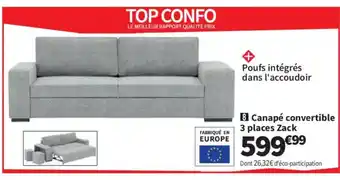 Actuellement en offre chez Conforama : Canapé convertible 3 places Zack ✅ Valable du 27-01 au 23-02.