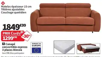 Actuellement en offre chez Conforama : Canapé convertible express 3 places Alessia ✅ Valable du 23-12 au 26-01.