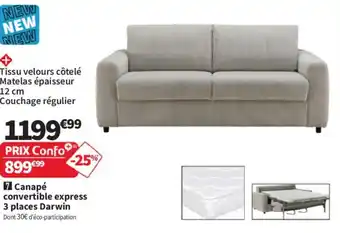 Actuellement en offre chez Conforama : Canapé convertible express 3 places Darwin ✅ Valable du 23-12 au 26-01.