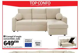 Actuellement en offre chez Conforama : Canapé d'angle convertible Jade ✅ Valable du 24-02 au 30-03.