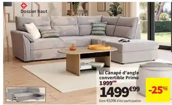L'offre est disponible dans plusieurs magasins, vérifiez tous les produits pour obtenir le Canapé d'angle convertible Primo le moins cher. Si vous souhaitez savoir si l'article est en vente avec une plus grosse remise dans un autre magasin, consultez la catégorie 'Meubles & Décoration'. Ces offres pourraient aussi vous intéresser : Canapé d'angle convertible trino, Canapé d'angle convertible Mattina & Canapé d'angle convertible Milo.