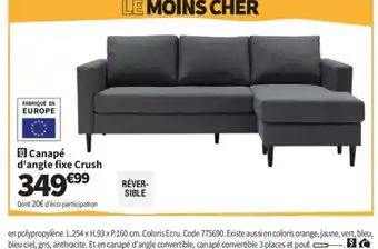 Actuellement en offre chez Conforama : Canapé d'angle fixe Crush ✅ Valable du 23-12 au 26-01.