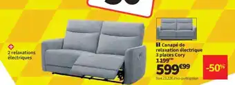 Actuellement en offre chez Conforama : Canapé de relaxation électrique 3 places Cory ✅ Valable du 7-01 au 3-02.