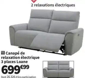 Actuellement en offre chez Conforama : Canapé de relaxation électrique 3 places Loane ✅ Valable du 17-04 au 14-05.