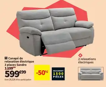 Actuellement en offre chez Conforama : Canapé de relaxation électrique 3 places Sandro ✅ Valable du 27-01 au 23-02.