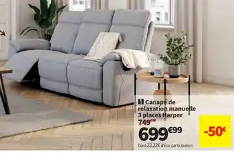 Offre Canapé de relaxation manuelle 3 places Harper chez Conforama