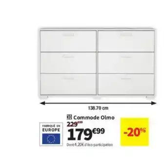 En plus de l'offre Commode Olmo, Conforama propose une large gamme de produits. Consultez le Catalogue Conforama hebdomadaire pour découvrir les meilleures offres et promotions. En plus de Commode Olmo, il y a aussi : Commode Tempra, Commode en bambou & TRANUM Commode.