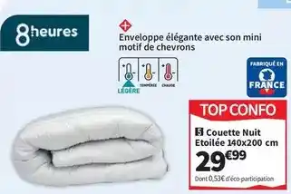 Découvrez les produits les moins chers parmi toutes les offres ! Si vous voulez savoir si Conforama propose la meilleure remise pour Couette nuit etoilee 140x200 cm, comparez-la sur la page thèmes ou avec d'autres magasins.