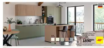 Actuellement en offre chez Conforama : Cuisine Snoa vert olive & Flow chêne de Côme ✅ Valable du 24-02 au 30-03.