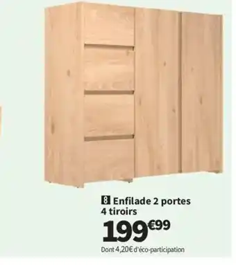 L'offre est disponible dans plusieurs magasins, vérifiez tous les produits pour obtenir le Enfilade 2 portes le moins cher. Si vous souhaitez savoir si l'article est en vente avec une plus grosse remise dans un autre magasin, consultez la catégorie 'Meubles & Décoration'. Ces offres pourraient aussi vous intéresser : Buffet 3 portes, FAR 2 portes & SABA 2 portes.