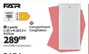 L'offre est disponible dans plusieurs magasins, vérifiez tous les produits pour obtenir le FAR 1 porte le moins cher. Si vous souhaitez savoir si l'article est en vente avec une plus grosse remise dans un autre magasin, consultez la catégorie 'Meubles & Décoration'. Ces offres pourraient aussi vous intéresser : FAR Réfrigérateur intégrable 1 porte, FAR Combiné & FAR Combiné.