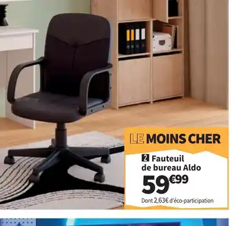 Actuellement, Fauteuil de bureau Aldo est en promotion chez Conforama. Toutes les informations utiles comme le prix, les conditions et la durée de validité sont affichées sur cette page. Consultez également les promotions similaires pour Fauteuil de bureau Aldo, afin de faire le meilleur choix. La promo Fauteuil de bureau Aldo est valable du 24-02-2026 au 30-03-2026. Si elle est expirée, regardez les autres offres équivalentes. Vous pouvez aussi suivre cette catégorie de produit pour être alerté lorsqu’une nouvelle promotion Fauteuil de bureau Aldo apparaît chez Conforama.Questions fréquemment posées au sujet de Fauteuil de bureau Aldo