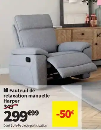 Actuellement en offre chez Conforama : Fauteuil de relaxation manuelle Harper ✅ Valable du 27-01 au 23-02.