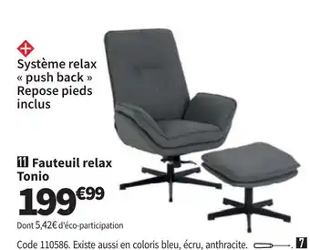 Actuellement en offre chez Conforama : Fauteuil relax Tonio ✅ Valable du 24-02 au 30-03.