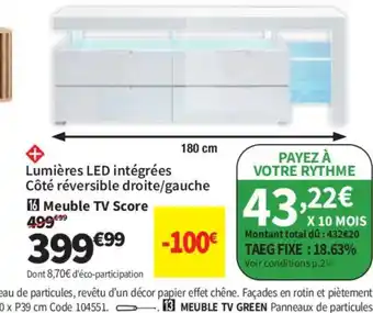 En plus de l'offre Meuble TV Score, Conforama propose une large gamme de produits. Consultez le Catalogue Conforama hebdomadaire pour découvrir les meilleures offres et promotions. En plus de Meuble TV Score, il y a aussi : Total - leu mercedes led intégrées côté réversible droite/gauche meuble tv score, Meuble tv & Meuble tv.