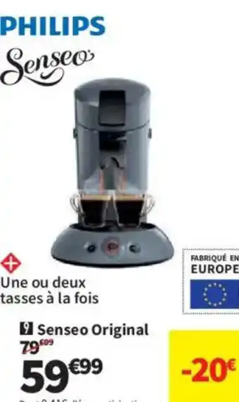 Cette PHILIPS Senseo Original est maintenant disponible chez Conforama. Découvrez toutes les promos en cours et profitez de réductions intéressantes. Commandez PHILIPS Senseo Original en ligne via le site officiel de Conforama ou achetez-la en magasin à un prix avantageux. Promocatalogues.fr réunit chaque jour les meilleures offres liées à PHILIPS Senseo Original. Envie d’être informé en premier ? Activez l’alerte en cliquant sur la cloche pour recevoir une notification gratuite dès que ce produit revient en promotion.Questions fréquemment posées au sujet de PHILIPS Senseo Original
