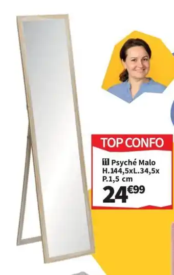 En plus de l'offre Psyché Malo, Conforama propose une large gamme de produits. Consultez le Catalogue Conforama hebdomadaire pour découvrir les meilleures offres et promotions. En plus de Psyché Malo, il y a aussi : Miroir psyché Pépita, Armoire bijoux psyché Julie & Yaourts Emprésurés MALO.